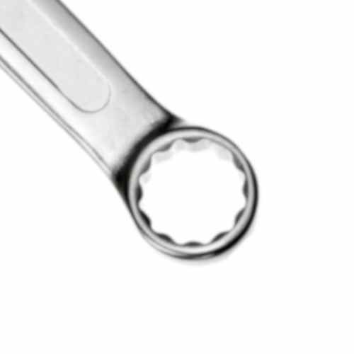 Chave combinada é fabricada em aço cromo-vanádio GEDORE red com acabamento niquelado e cromado, oferecendo resistência e durabilidade. Indicada para aperto e desaperto de porcas e parafusos. Conta com um lado fixa e outro estrela de medidas iguais.